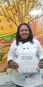 A instrutora do curso de Gastronomia, Miriam Aquino, fala sobre o curso e a aplicação do aprendizado no dia a dia. “Aqui vamos fazer pizza, bolos, salgados, diversas coisas que podem vender rapidamente. Quanto ao empreendedorismo, uma alternativa é colocar na porta da sua casa, ou mesmo sair na bicicleta, por exemplo, vendendo para vizinhos, conhecidos. Se torna algo bem rápido e interessante para incrementar a renda”, explica Miriam.